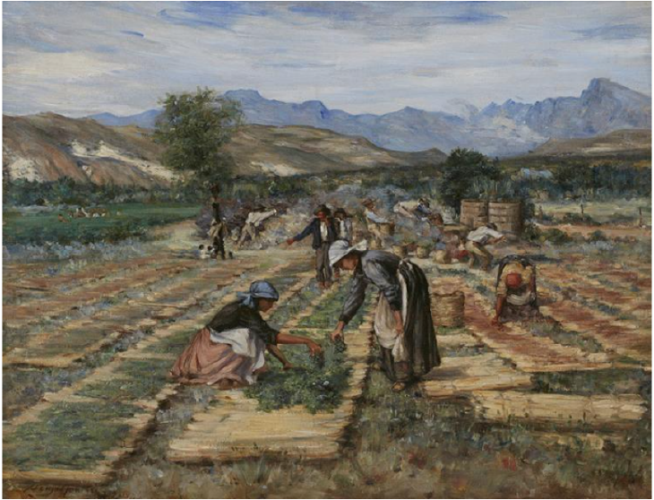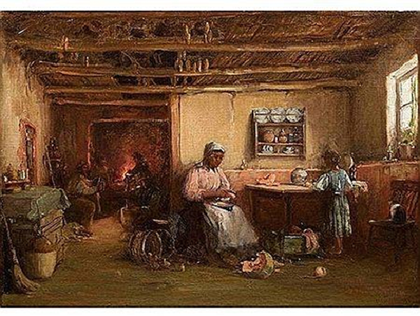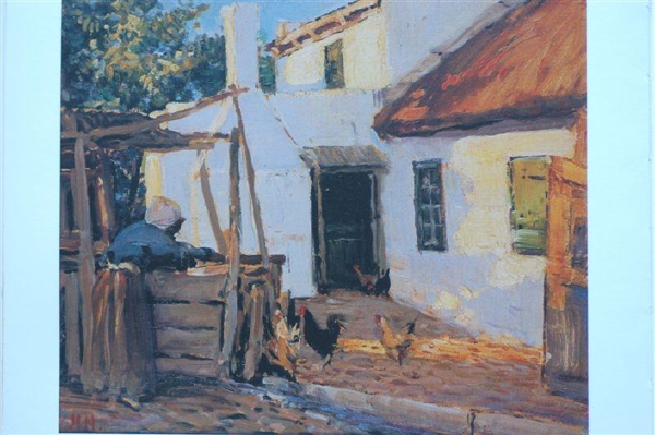 His paintings of farm activities and the active lives of the local community are Van Gogh-like and show the influence by the Barbizon group, for example: