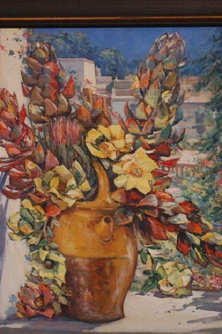 Often we’d sing merrily together around the piano while Pieter himself would play some of his old student songs. It struck me how confidently his broad fingers would reach the notes accompanying the singing, whilst my eyes roamed over the completed paintings on the walls, and I admired the utter beauty which those fingers created with a fine pencil. Specks of scarlet paint become Jerusalem Poppies:
