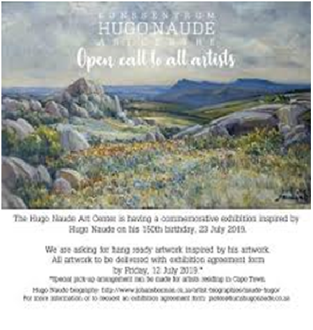 When googling “Pieter Hugo Naudé images” in 2019, there was an invitation from the Hugo Naudé Art Centre in Worcester to all artists, to submit their Hugo Naudé-inspired-paintings for a commerative exhibition on his 150th birthday, 23 July 2019: